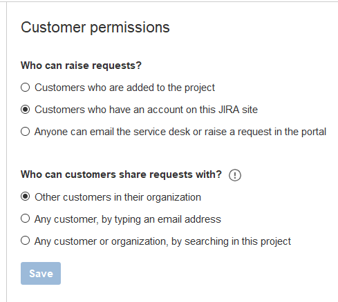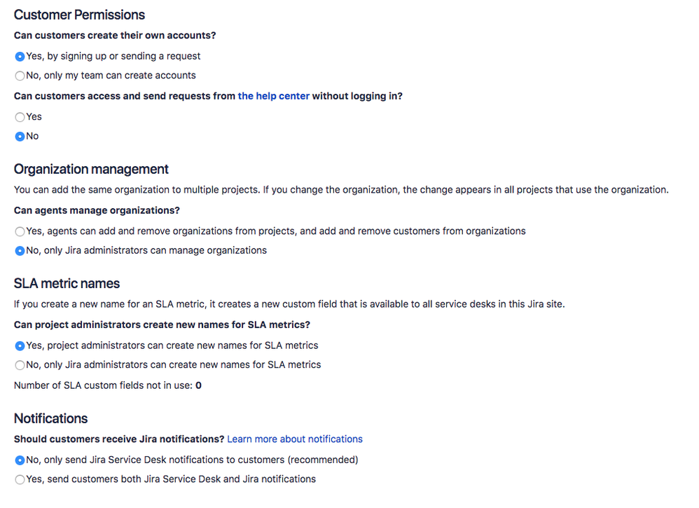 You can t edit project permissions or roles on the free plan for jira software or jira core and you can t configure issue level security on any free plan including jira service desk. Jira service desk global and project permissions. Choose who can access the portal and send requests to the it service desk customers my team adds to the project only people you add to the project can access your portal via a url or the help center. Based on global permissions a project admin can choose to open up a service desk to any customer who raises a request or limit it to customers added by their team.