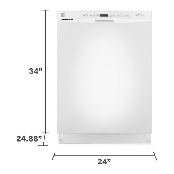 Using electricity and water your dishwasher kills germs and leaves your pans dishes and utensils clean and fresh. If you need help to repair your kitchen appliances feel free to contact kenmore support. This kenmore built in dishwasher is sleek chic and versatile. Holding up to 12 full place settings this dishwasher ensures you spend less time scrubbing and drying dishes.