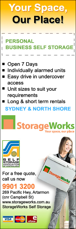 Storage works self storage is located on the pacific highway artarmon in sydney near north sydney crows nest st leonards chatswood neutral bay mosman and lane cove making us easy to find and access.